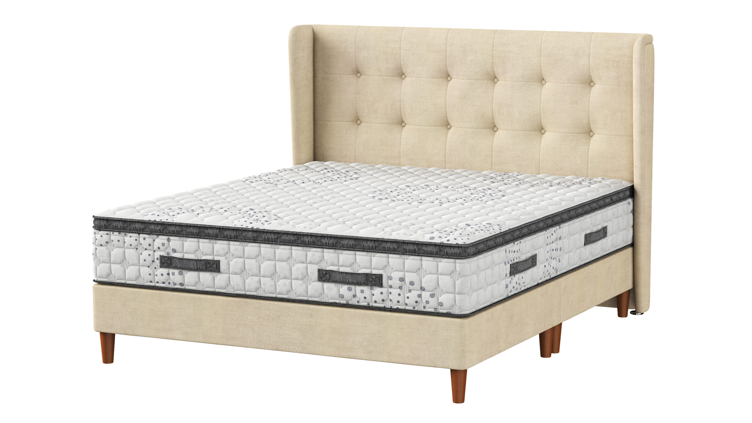 The Headboard is the Sofia Wing Headboard in Plush Cream.